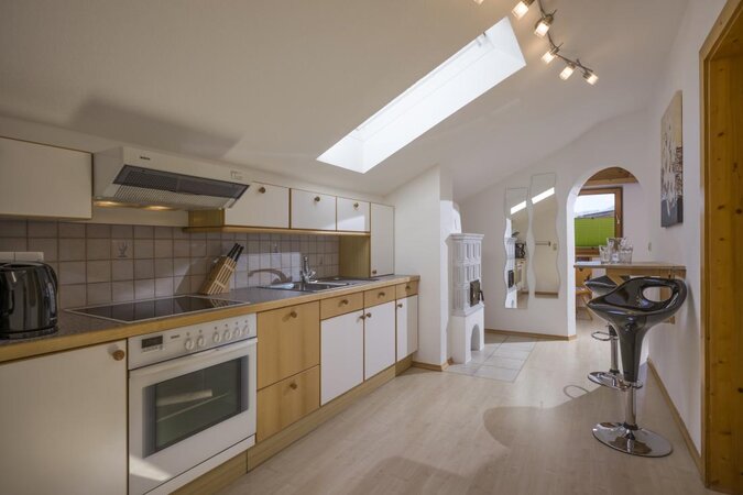 - Wohnküche: Küchenblock und Esstisch